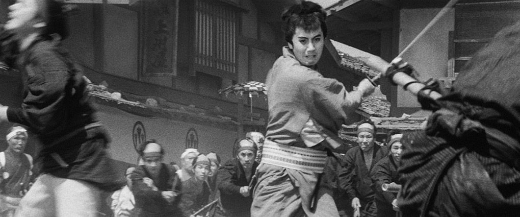 In an unspecified district in samurai-era Japan, Kashiyama Denshichiro (Gomi Ryūtarō), a prominent and arrogant member of the powerful Iwashiro clan, rides noisily into town and strides into the Isaka Jigen-ryū dojo run by the neighbouring Minazuki clan with whom the Iwashiro clan has an alliance, and demands a fencing lesson. He is met by assistant instructor, Kobuse Takuma (Ichikawa Raizō), who informs him politely that that the head instructor is unavailable and that day’s training has already concluded. Denshichiro announces that he’s heard there is an expert in Jigen-ryū swordsmanship at the dojo, which is quickly identified as Takuma, but when he demands that Takuma draw his sword, the level-headed assistant instructor calmly declines.