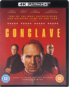 How can a film headlining the voting in of a new Pope – consisting of only a series of conversations – be so compelling? It’s all in the script, the performances, the editing and the direction. Edward Berger’s CONCLAVEhas Camus saluting the inimitable power of the cinematic arts, while Slarek examines the new Black Bear UHD/Blu-ray combo release.